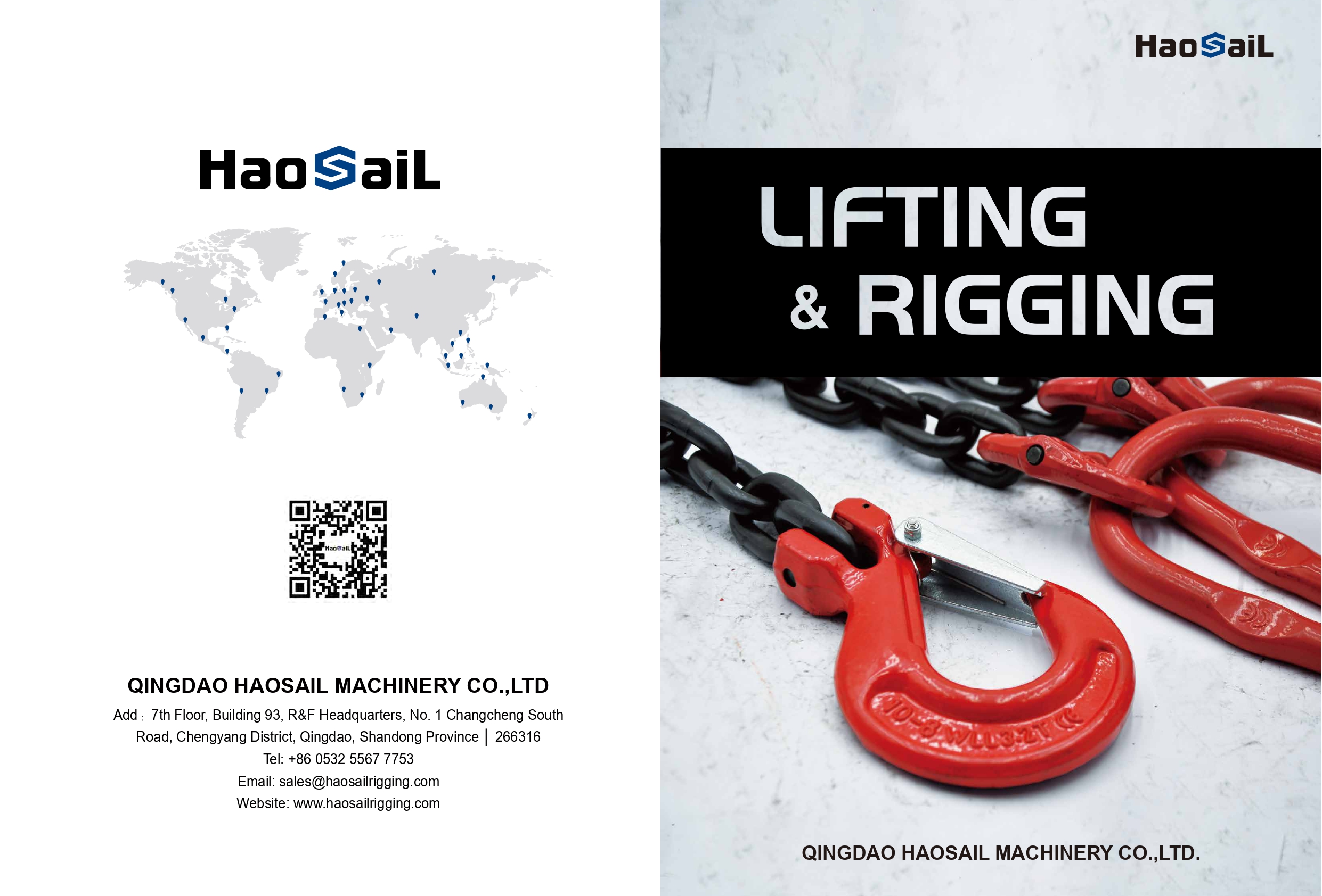 Katalog peralatan lifting dan rigging: sling, shackle, chain block berstandar internasional.